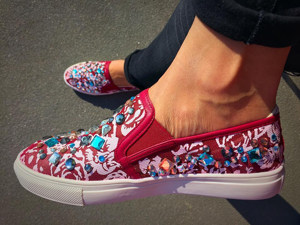 Espadrile de Dama Ieftine, model din material textil cu strasuri.