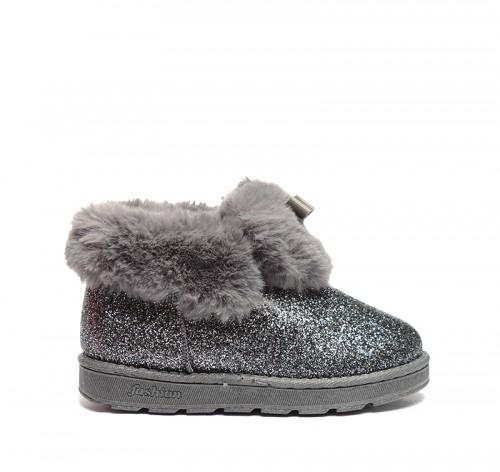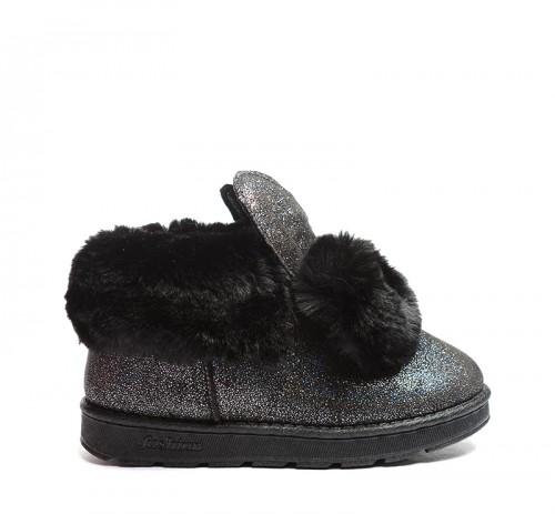 Cizme tip UGG de dama, captusite cu material textil si blana sintetica, confectionate din cauciuc, cu talpa aderenta.