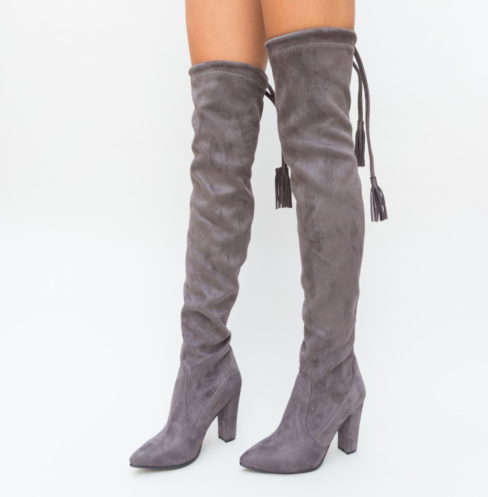 Cizme lungi peste genunchi din piele eco intoarsa si material textil la interior.