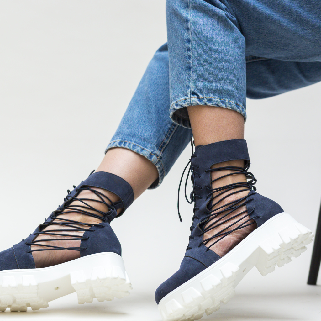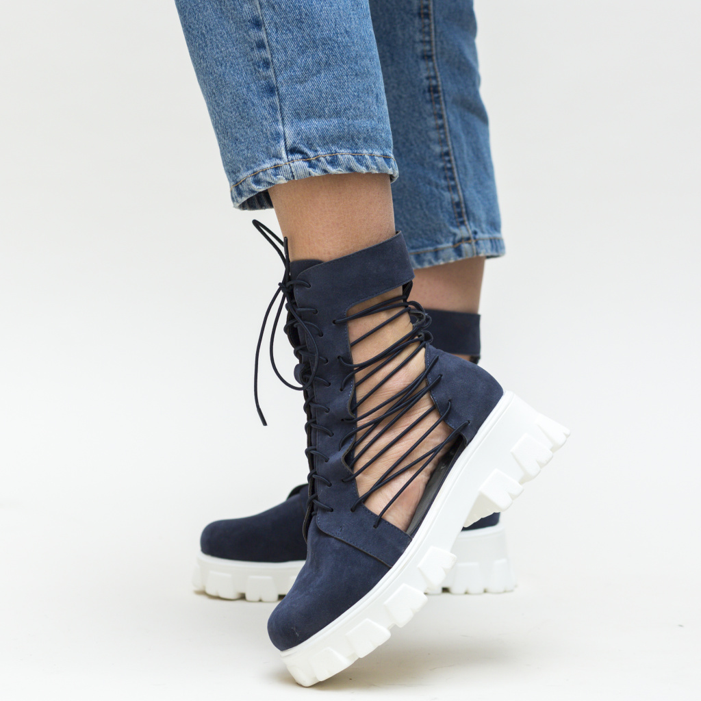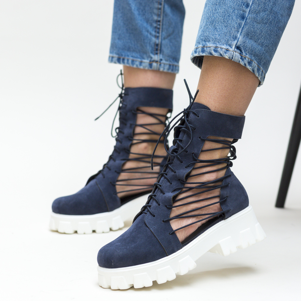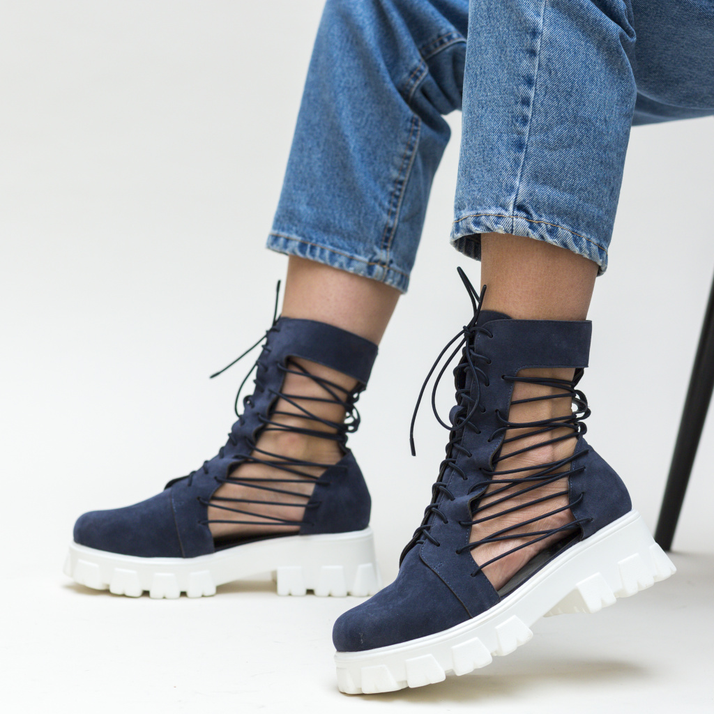ghete decupate bleumarin din piele eco intoarsa si material textil