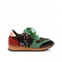 Pantofi sport cu piele ecologica, model cu tinte si imprimeu floral.