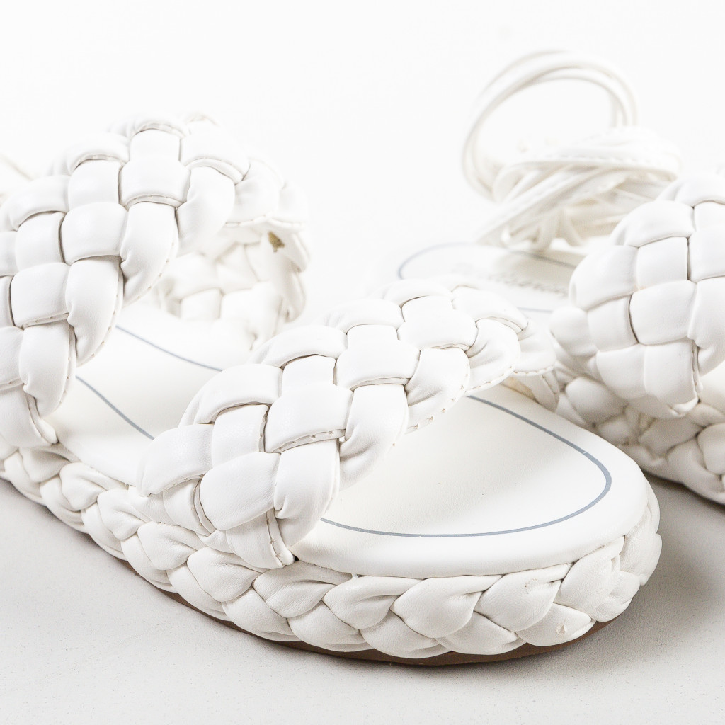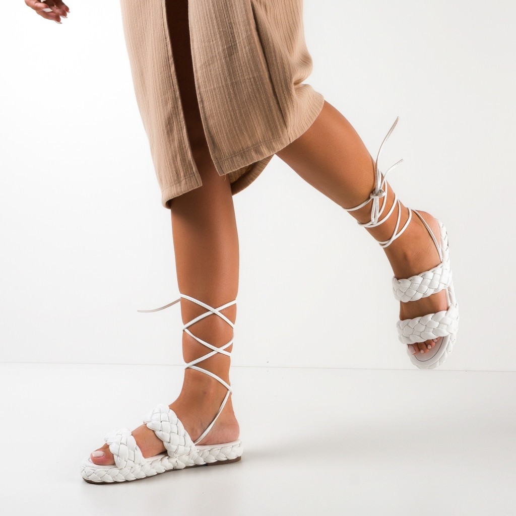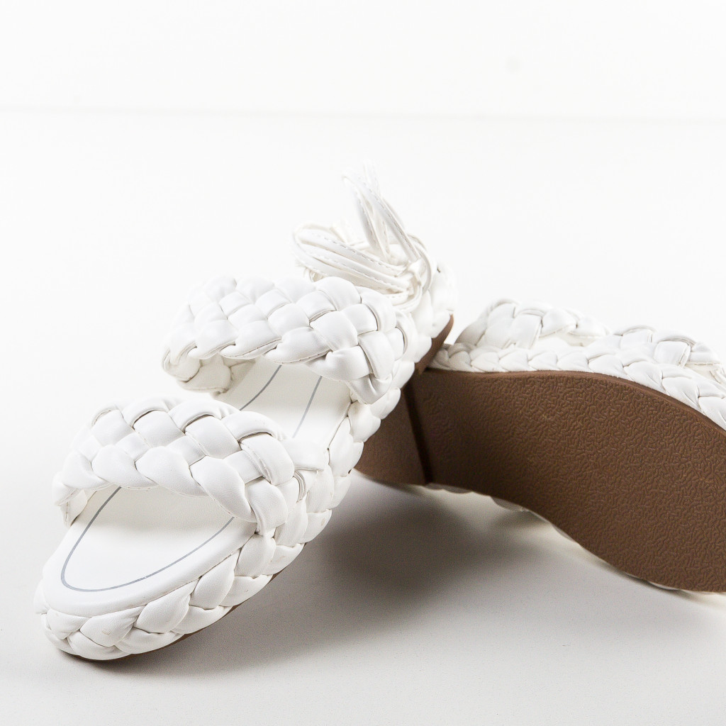 Sandale albe din piele eco cu inaltime de 2cm