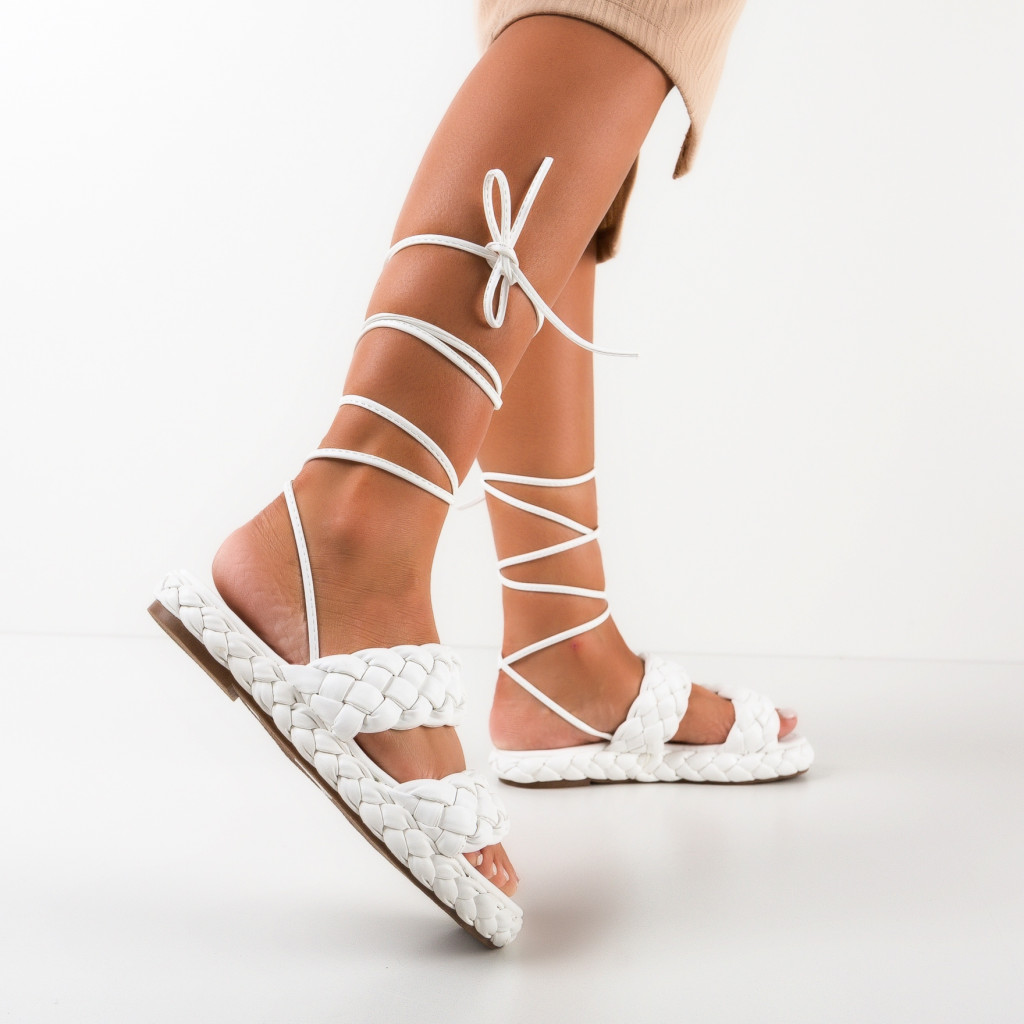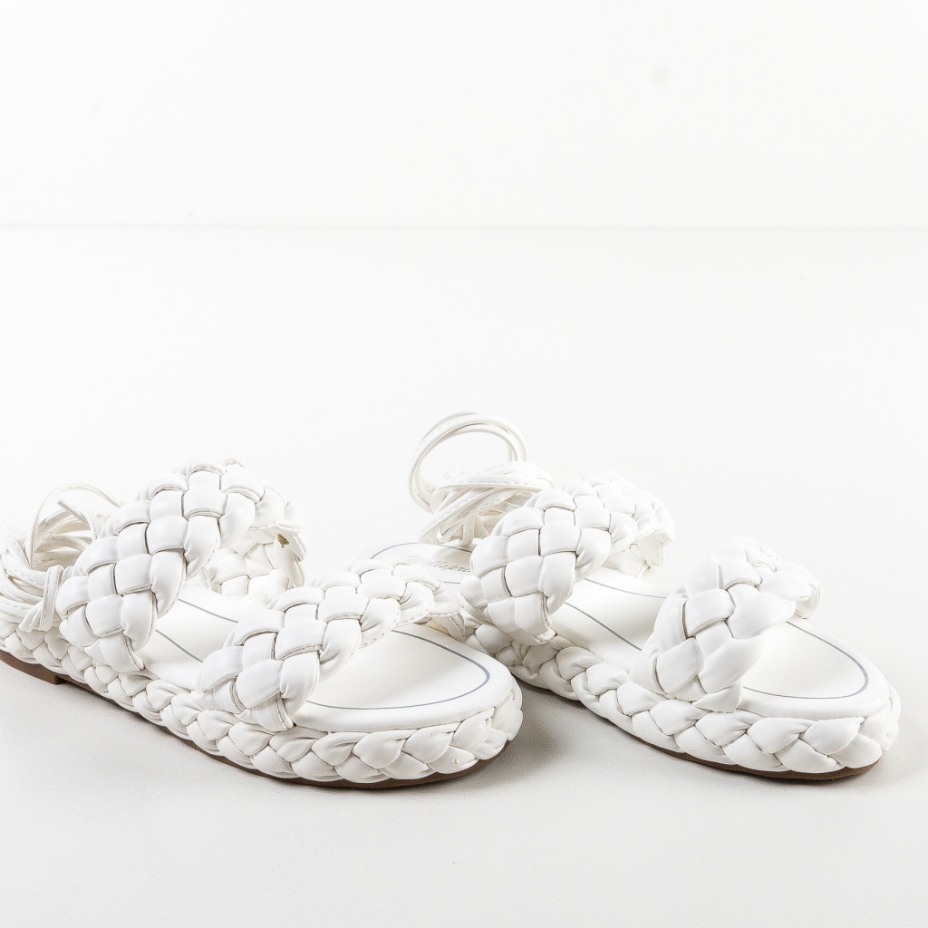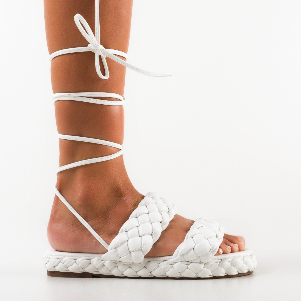 Sandale albe din piele eco cu inaltime de 2cm