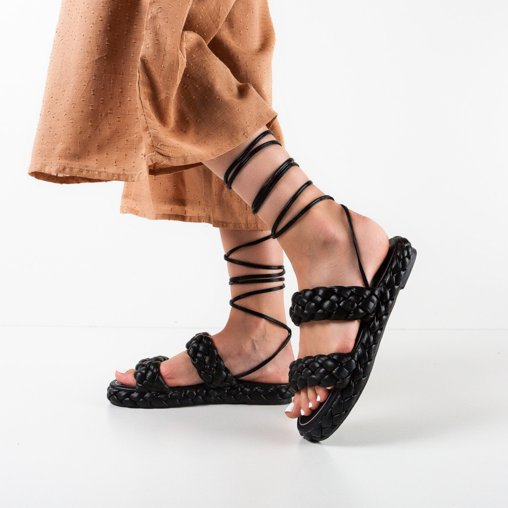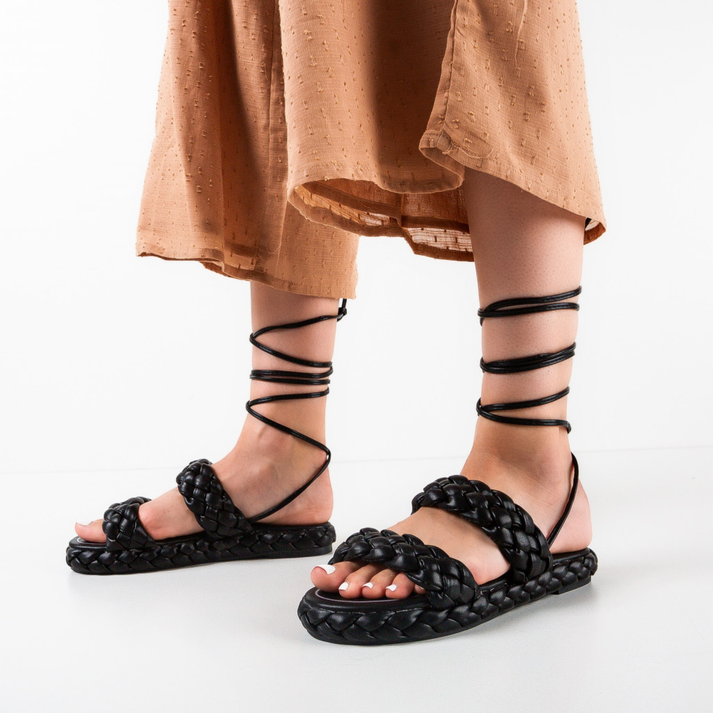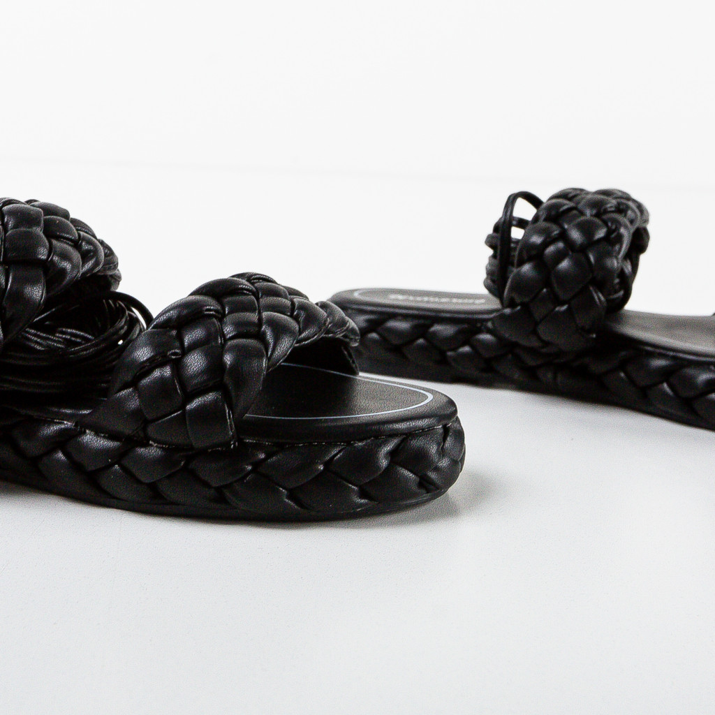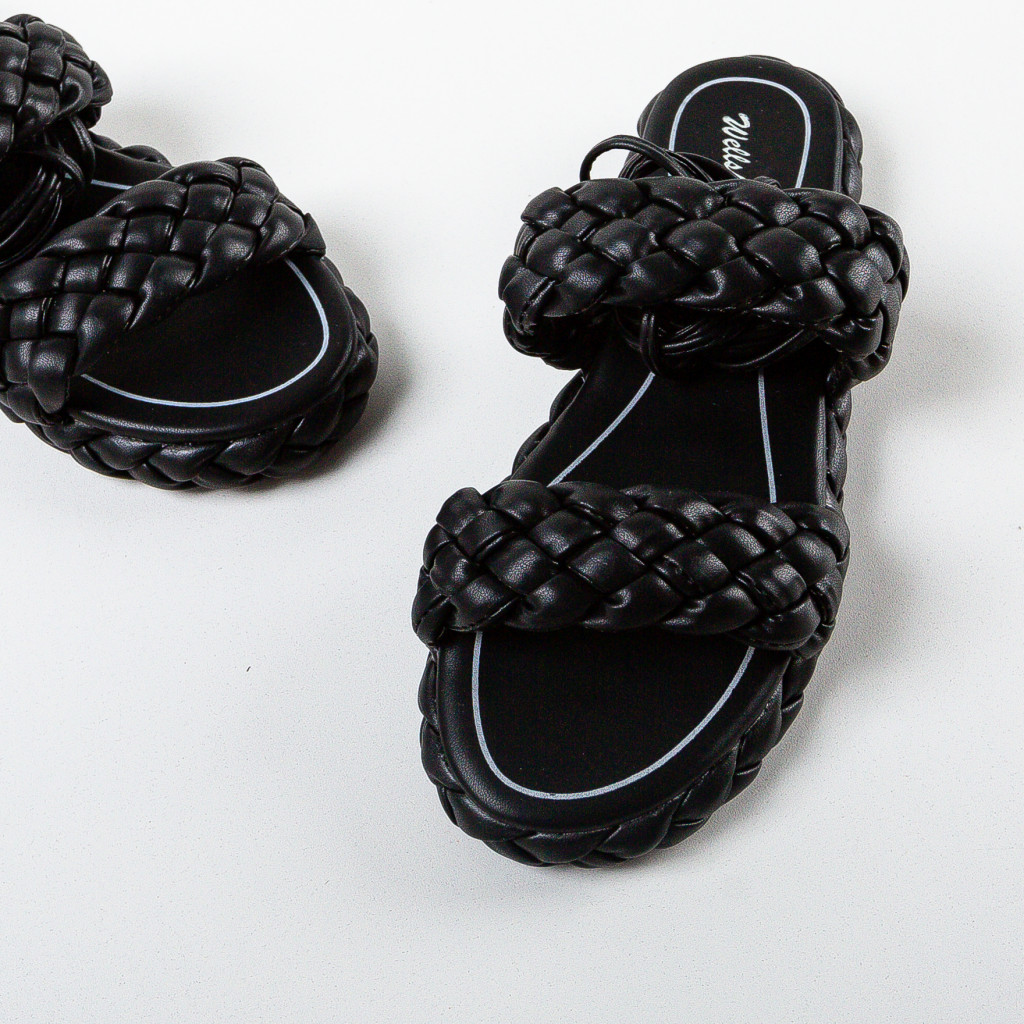 Sandale negre din piele eco cu inaltime de 2cm